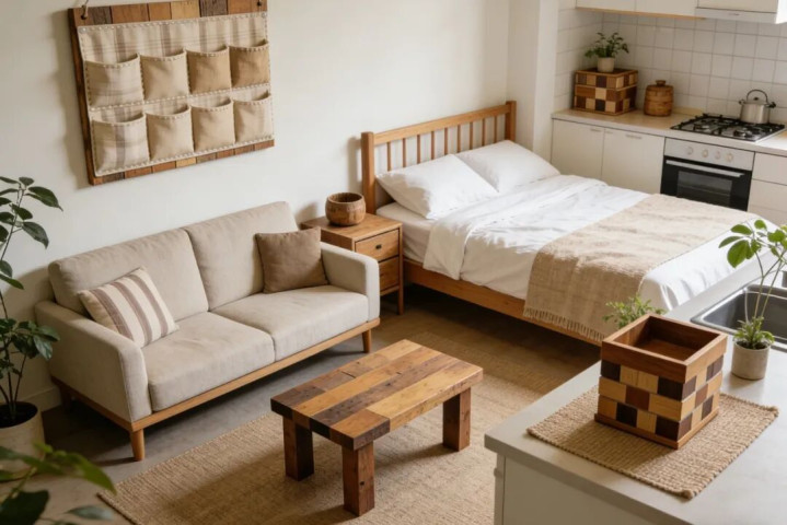 空间应用:客厅用再生实木沙发 + 改造收纳柜,卧室用再生实木床 + 可降解床品,厨房用再生实木置物架 + 玻璃密封罐(替代塑料收纳)。
