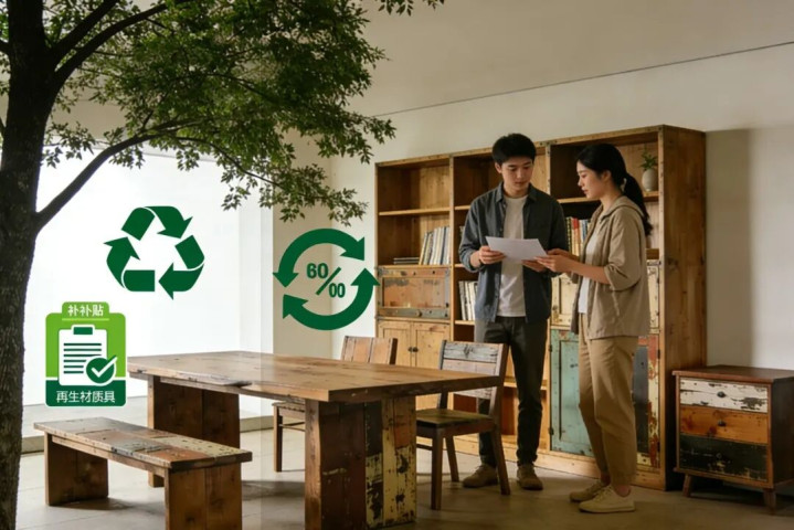 政策 + 补贴加持:家装以旧换新政策覆盖再生材质产品,购买环保家具可享最高 15% 补贴,花更少钱就能选到优质产品。